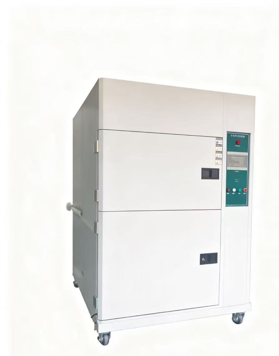 三箱设备区分为:高温区,低温区,试验区三部分,测试产品置测试区,冲击时高温区或低温区的温度冲击入测试区进行冲击,测试产品为态式