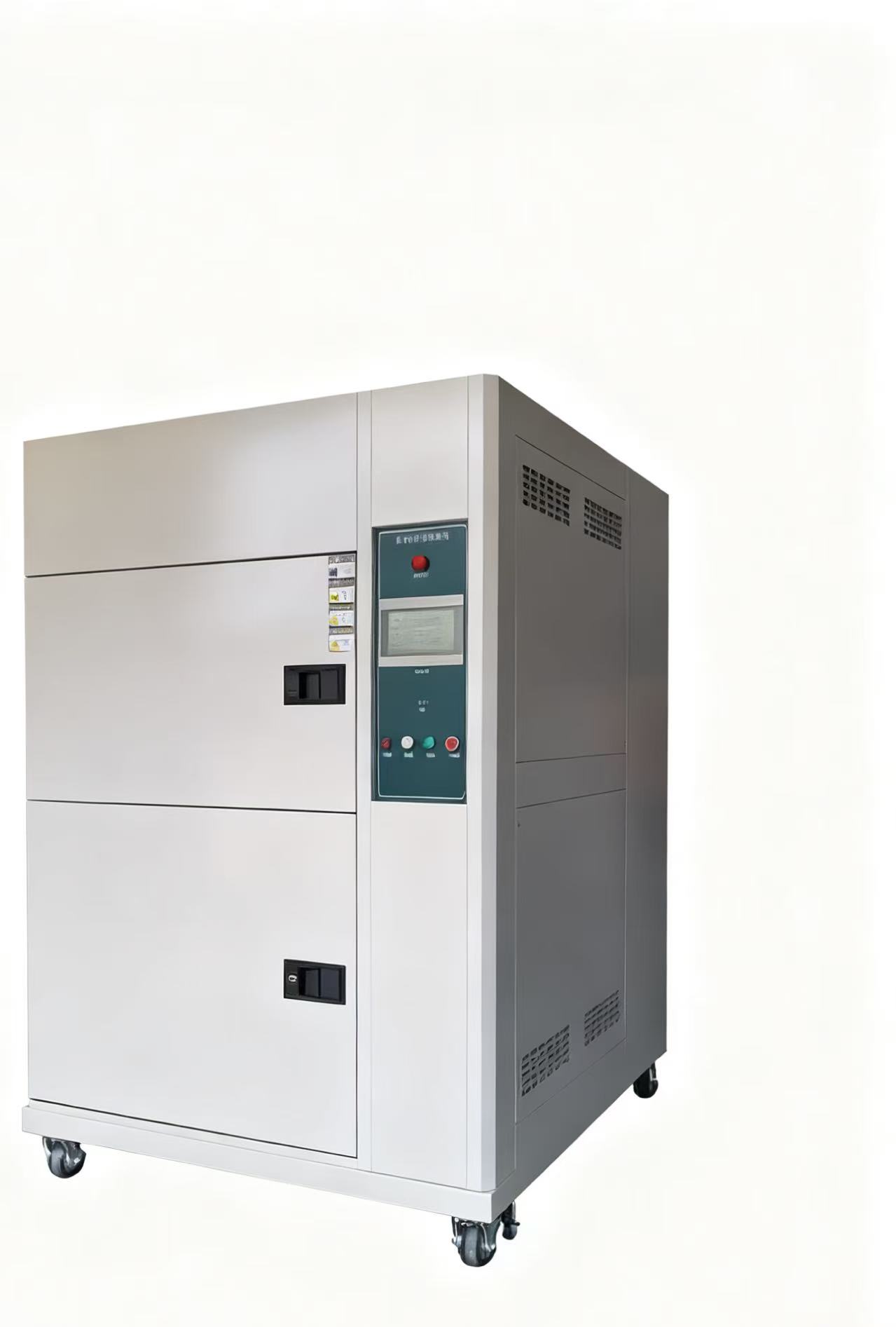 冷热温度冲击试验机是金属,塑料,橡胶,电子等材料行业必备的测试设备,用于测试结构或复合材料,在瞬间下经极高温及极低温的联系环境下忍受的程度,得以在最短时间内