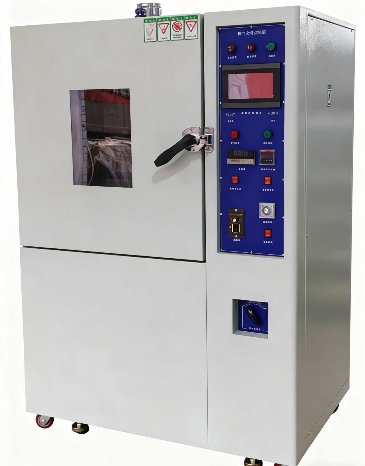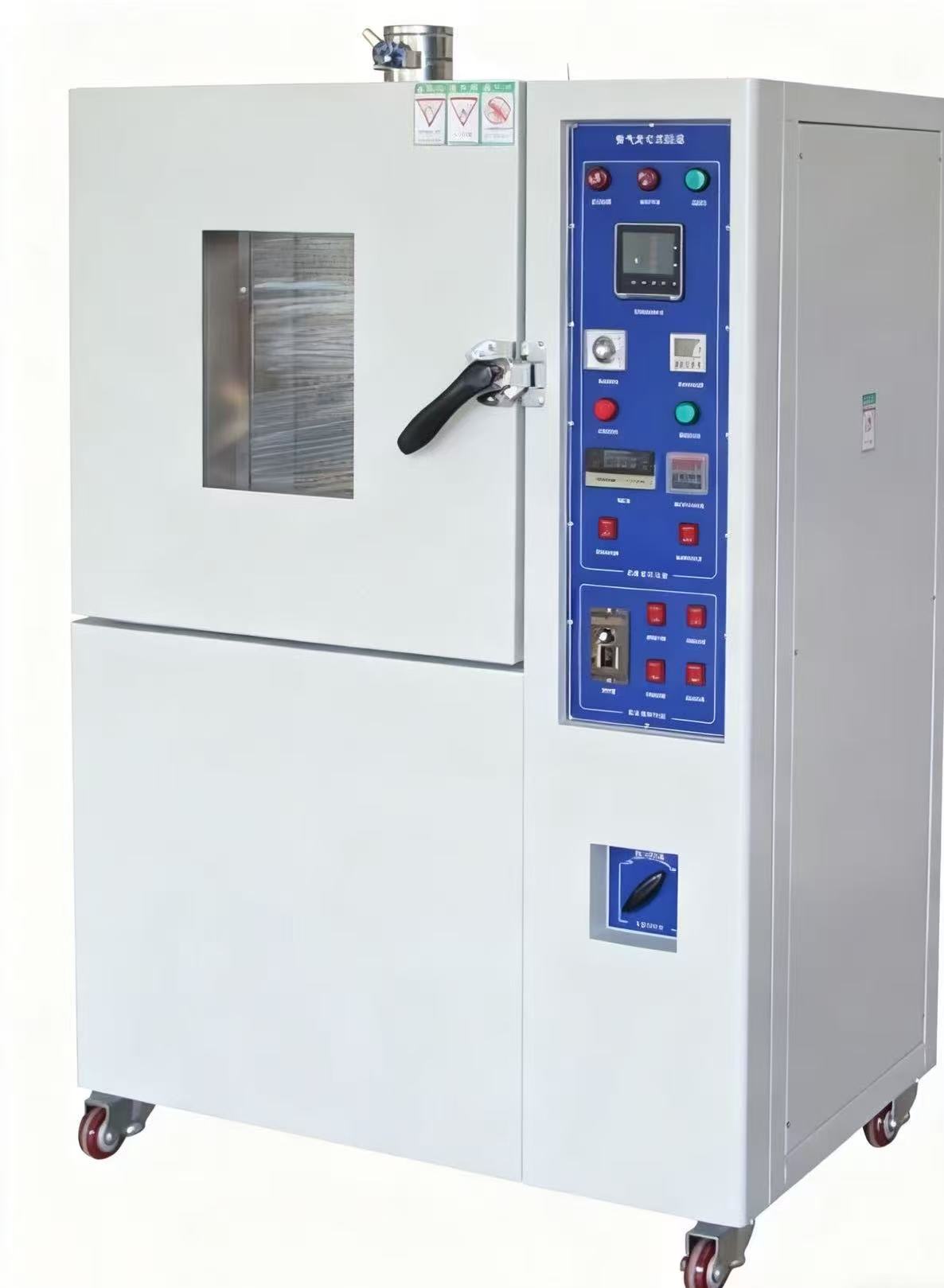 换气式老化试验机适用于电线类、皮类、塑料类、橡胶类、布类、受热前和受热后变化特性。针对电线类在受热时为维持箱内新鲜的空气,故特制换气量的调节。本试验机具备精密设计之空气置换调整装置及数字式电压计、电流计、瓦时计、定时器,可作为空气置换率之测定。水平式强制送风循环系统及内部两侧之气流调整版,确保试验机内部温度均匀稳定。